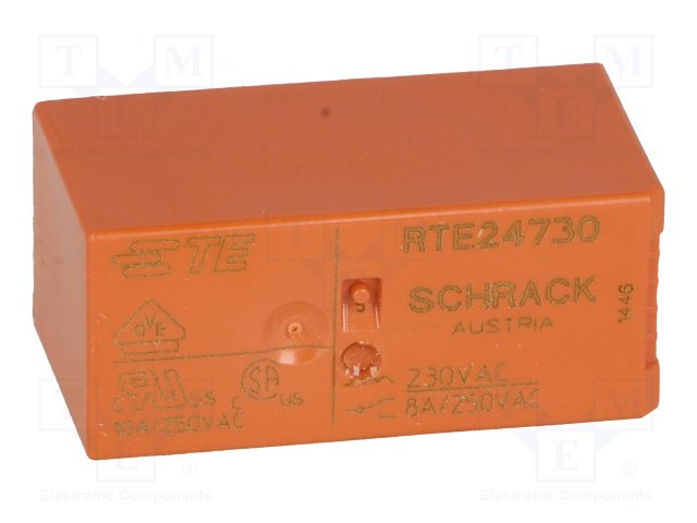 Реле: электромагнитное; DPST-NO; Uобмотки: 230ВAC; 8A/250ВAC; 8А |