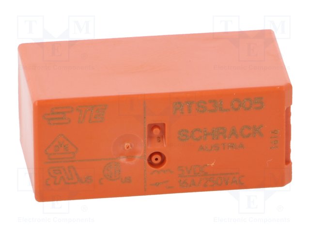 Реле: электромагнитное; SPST-NO; Uобмотки: 5ВDC; 16A/250ВAC; 38Ом |