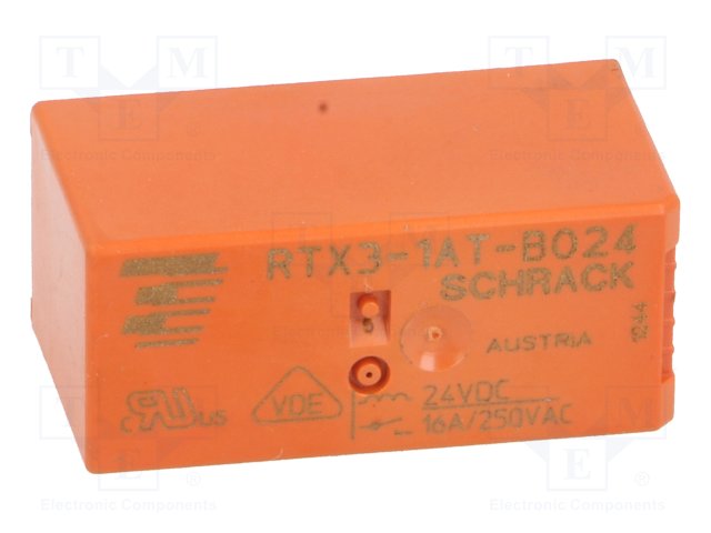 Реле: электромагнитное; SPST-NO; Uобмотки: 24ВDC; 16A/250ВAC; IP40 |