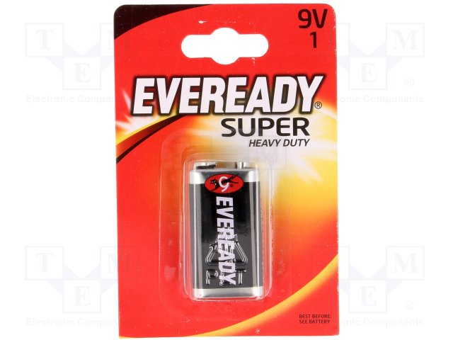 Батарея: цинк-хлоридная; 9В; 6F22; Eveready Super Heavy Duty