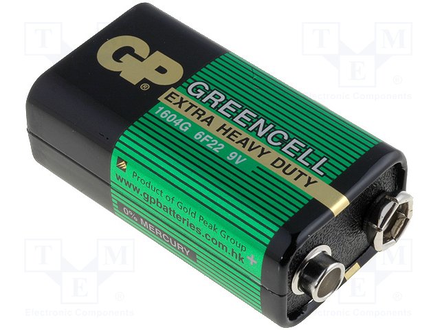 Battery: zinc-chloride; 9V; 6F22; non-rechargeable