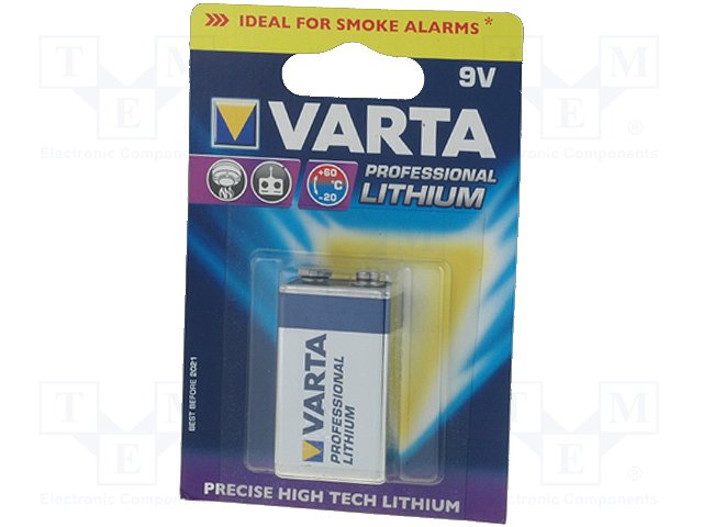Battery: lithium; 9V; 6F22; Batt.no: 1; non-rechargeable