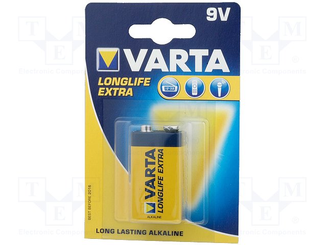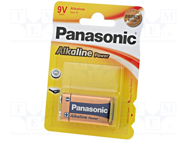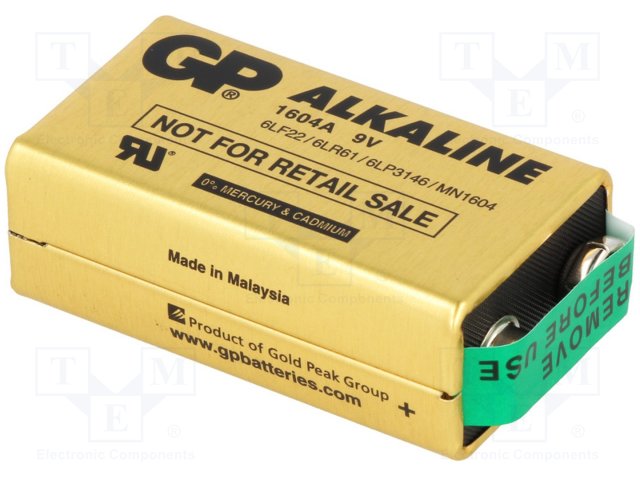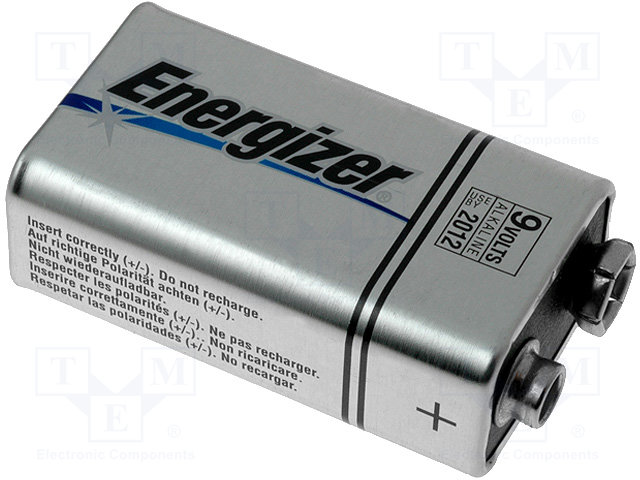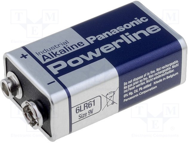 Battery: alkaline; 9V; 6F22; non-rechargeable