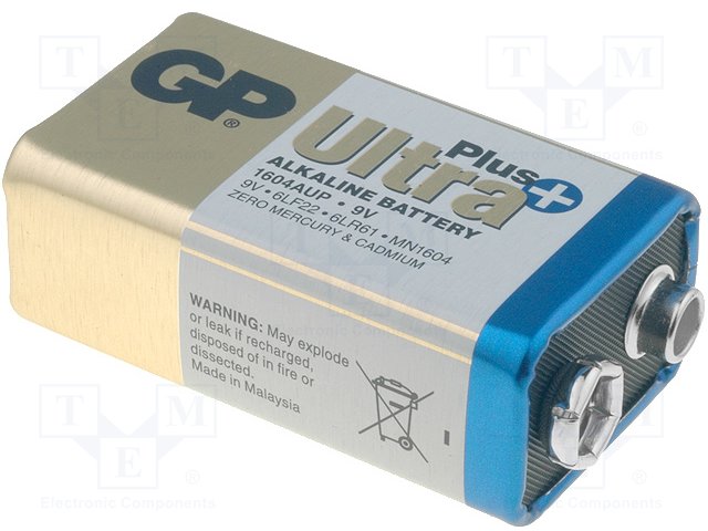 Battery: alkaline; 9V; 6F22; PLUS; non-rechargeable