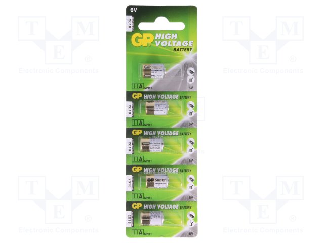 Батарея: щелочная; 6В; A11; Кол-во бат: 5; Ø10x16мм; 38мАч