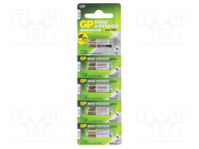 Батарея: щелочная; 12В; 23A,8LR932; Кол-во бат: 5; Ø10x28мм