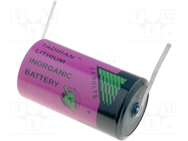 Батарея: литиевая (LTC); 3,6В; C; плоские, под пайку; Ø26,2x50мм
