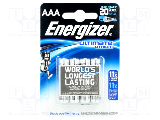 Батарея: литиевая; 1,5В; AAA; ULTIMATE LITHIUM; Кол-во бат: 4