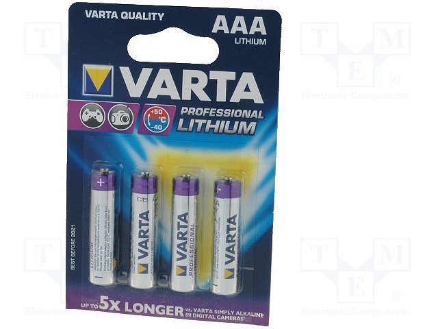Battery: lithium; 1.5V; AAA; Batt.no: 4; non-rechargeable