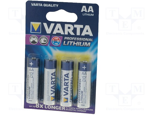 Батарея: литиевая; 1,5В; AA; Кол-во бат: 4; Ø14,5x50,5мм; 2900мАч