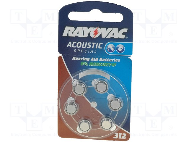 Батарея: цинк-воздушная (ZnO2); 1,4В; AC312,R36,дисковая; 180мАч
