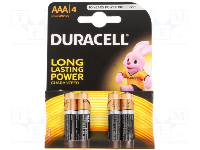 Battery: alkaline; 1.5V; AAA; MAX; Batt.no: 4; non-rechargeable
