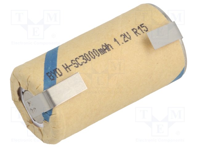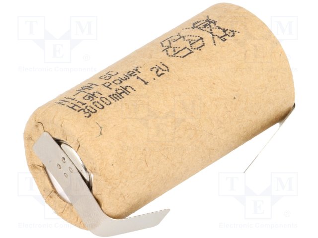 Аккум: Ni-MH; SubC; 1,2В; 3000мАч; Выводы: плоские, под пайку