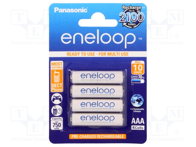 Аккум: Ni-MH; AAA; 1,2В; 750мАч; ENELOOP; Ø10,5x44,5мм