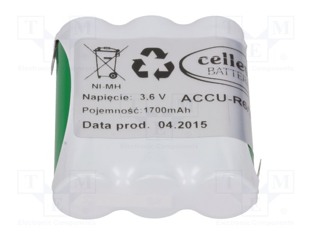 Аккум: Ni-MH; AA; 3,6В; 1700мАч; Выводы: плоские, под пайку