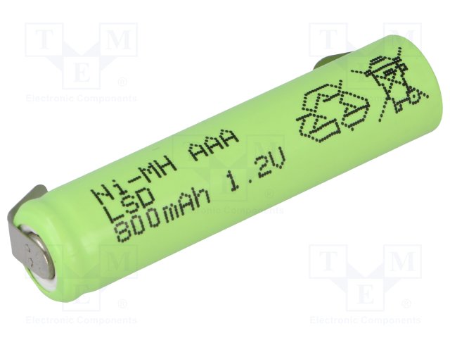Аккум: Ni-MH; AAA,R3; 1,2В; 800мАч; Выводы: плоские, под пайку
