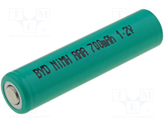 Аккум: Ni-MH; AAA,R3; 1,2В; 700мАч; Выводы: плоские, под пайку
