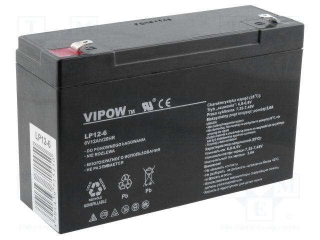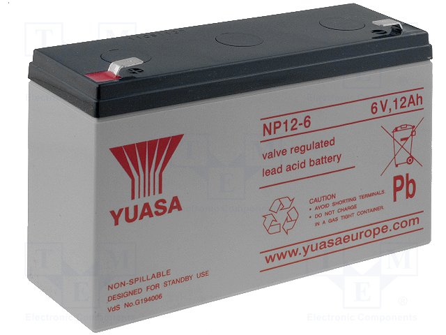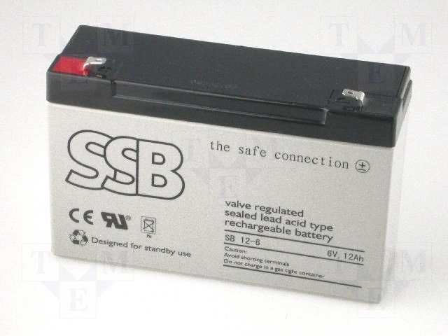 Аккум: свиноцово-кислотный; 6В; 12Ач; AGM; необслуживаемый |