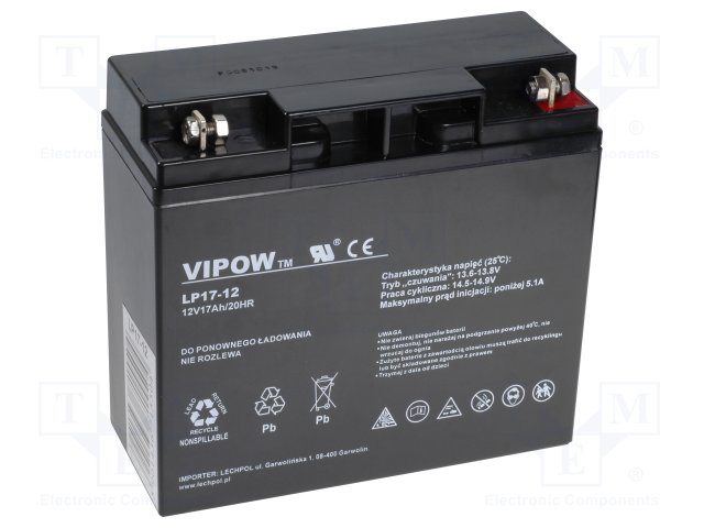 Аккум: свиноцово-кислотный; 12В; 17Ач; AGM; необслуживаемый |