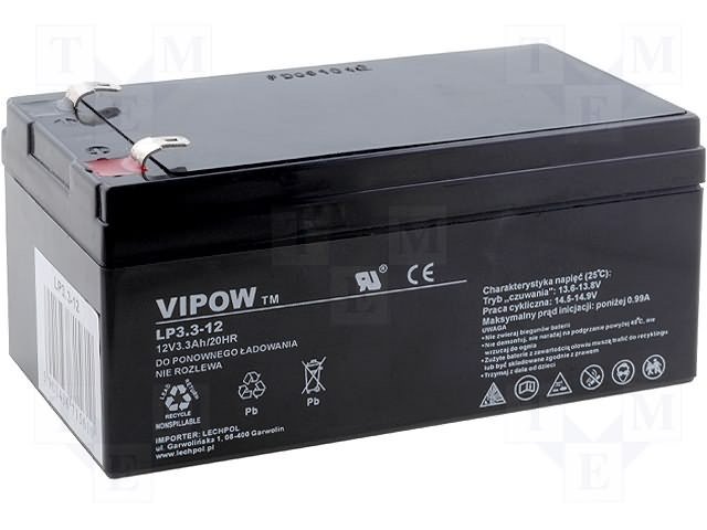 Аккум: свиноцово-кислотный; 12В; 3,3Ач; AGM; необслуживаемый |