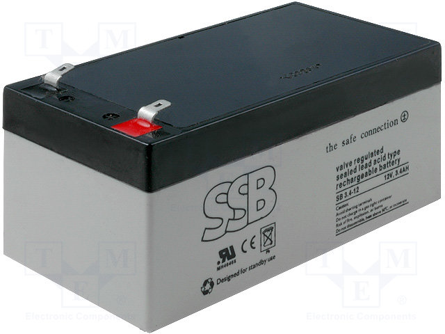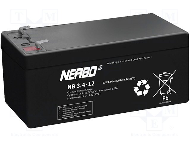 Аккум: свиноцово-кислотный; 12В; 3,4Ач; AGM; необслуживаемый |
