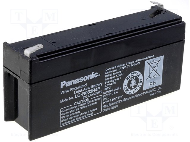 Аккум: свиноцово-кислотный; 6В; 3,4Ач; AGM; необслуживаемый |