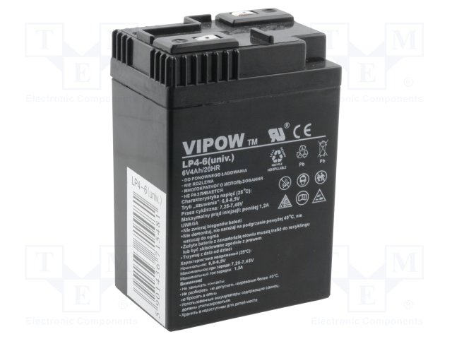 Аккум: свиноцово-кислотный; 6В; 4Ач; AGM; необслуживаемый |