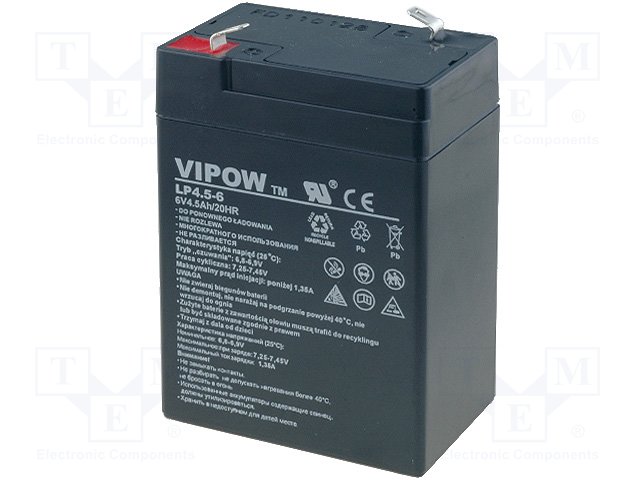 Аккум: свиноцово-кислотный; 6В; 4,5Ач; AGM; необслуживаемый |