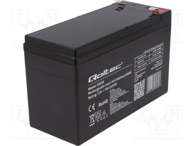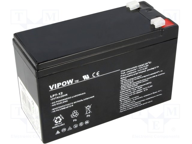 Аккум: свиноцово-кислотный; 12В; 7Ач; AGM; необслуживаемый |