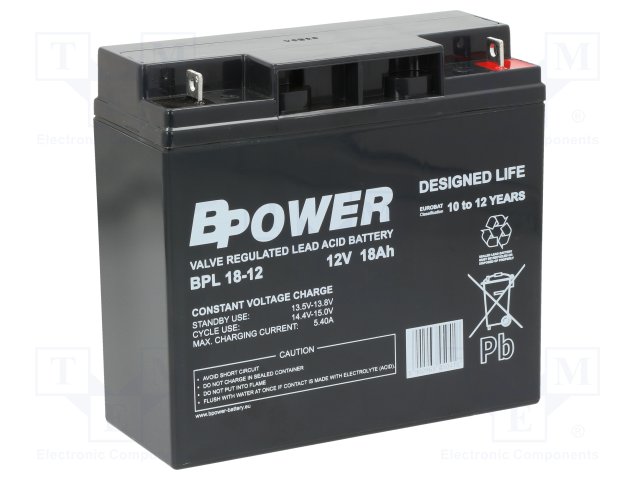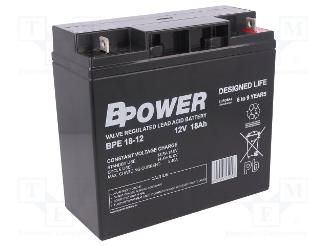 Аккум: свиноцово-кислотный; 12В; 18Ач; AGM; необслуживаемый |