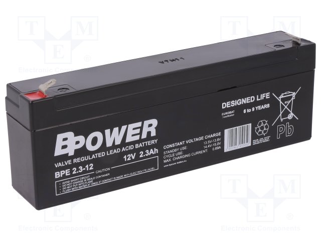 Аккум: свиноцово-кислотный; 12В; 2,3Ач; AGM; необслуживаемый |