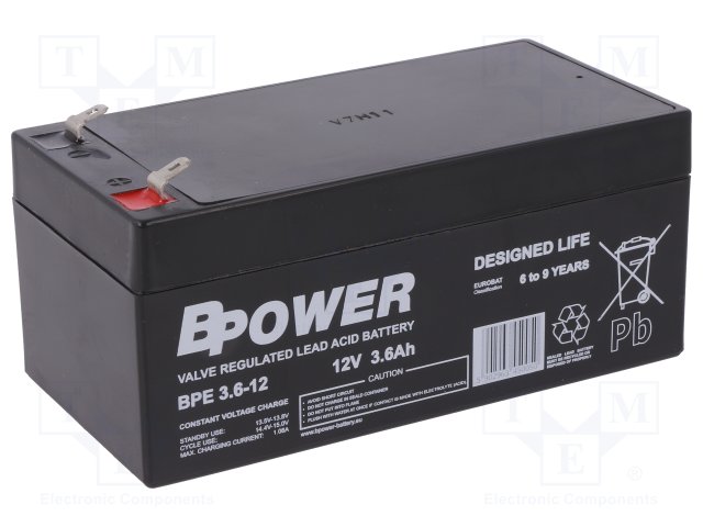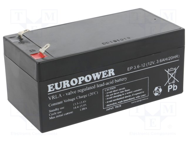 Аккум: свиноцово-кислотный; 12В; 3,6Ач; AGM; необслуживаемый |