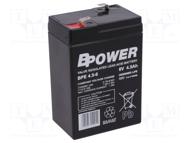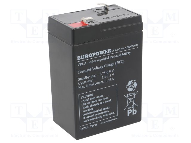 Аккум: свиноцово-кислотный; 6В; 4,5Ач; AGM; необслуживаемый |