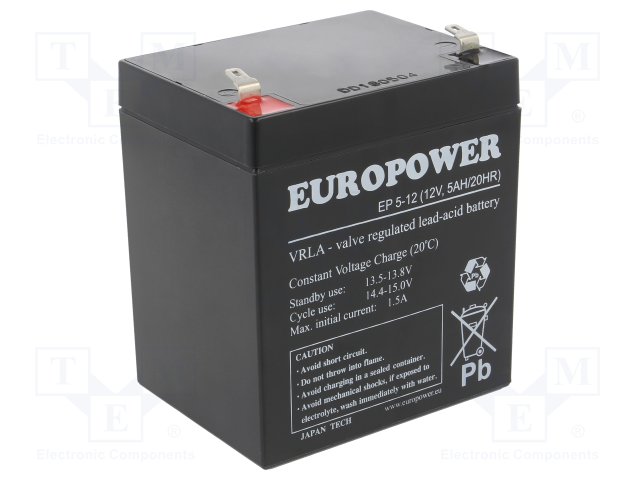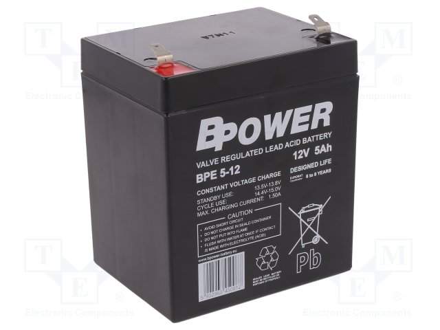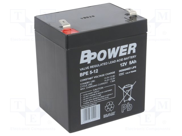 Аккум: свиноцово-кислотный; 12В; 5Ач; AGM; необслуживаемый |