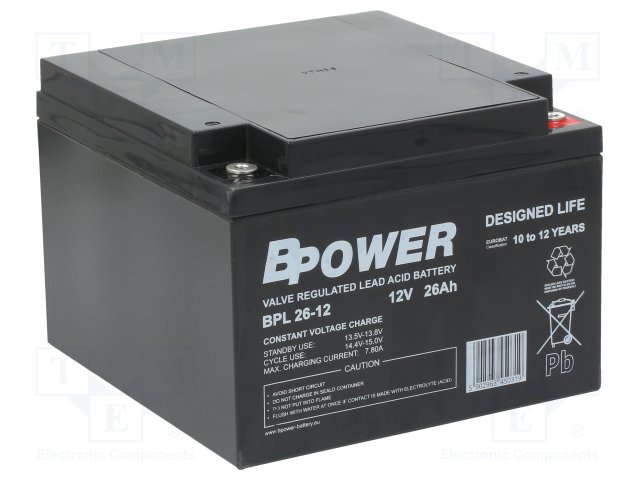Аккум: свиноцово-кислотный; 12В; 26Ач; AGM; необслуживаемый |