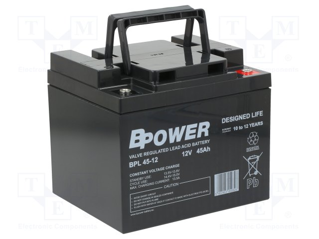 Аккум: свиноцово-кислотный; 12В; 45Ач; AGM; необслуживаемый |