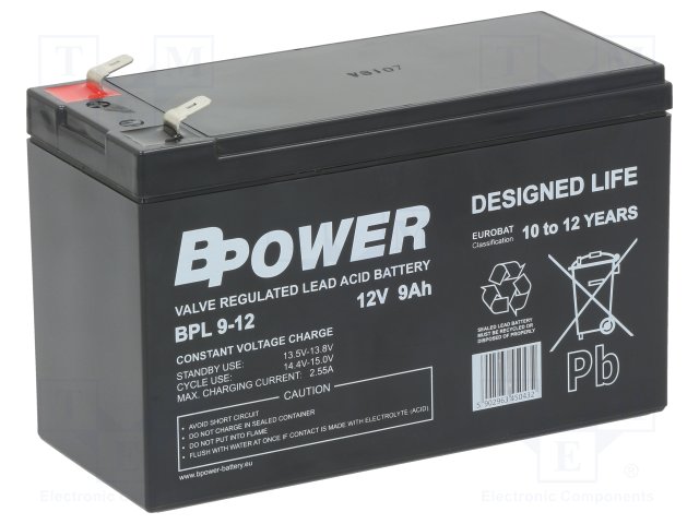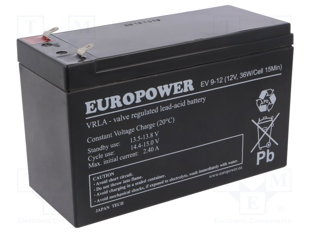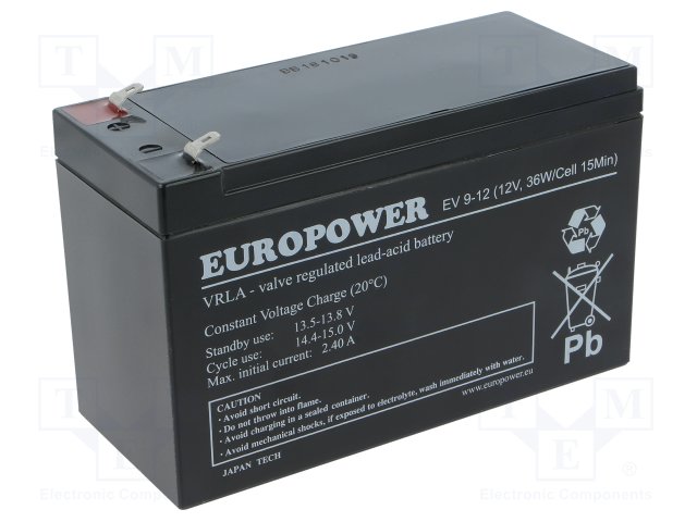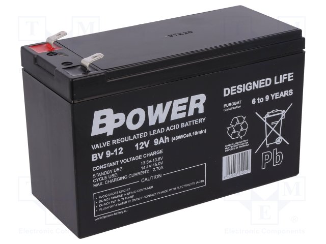 Аккум: свиноцово-кислотный; 12В; 9Ач; AGM; необслуживаемый; 48Вт |