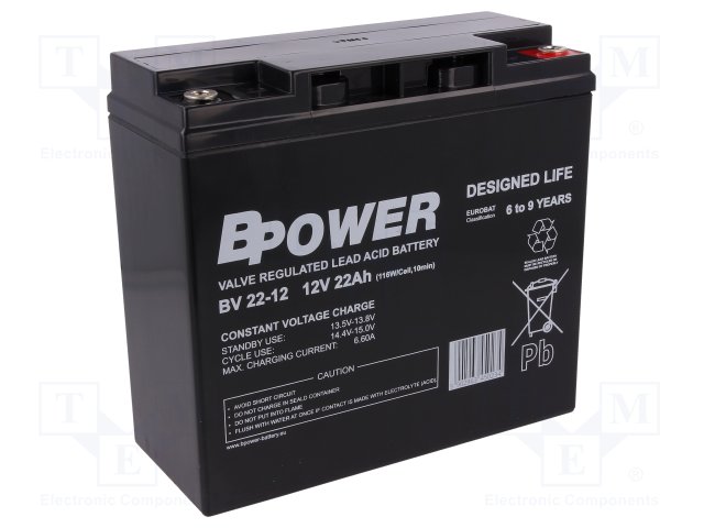 Аккум: свиноцово-кислотный; 12В; 22Ач; AGM; необслуживаемый; 116Вт |