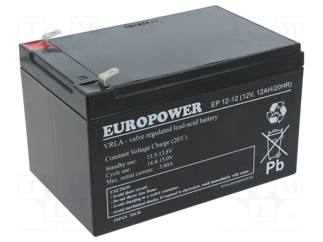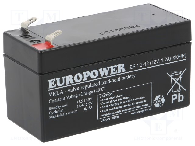 Аккум: свиноцово-кислотный; 12В; 1,2Ач; AGM; необслуживаемый |