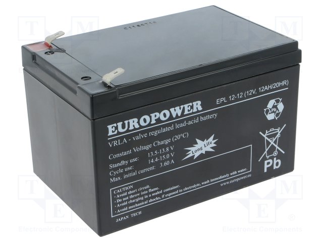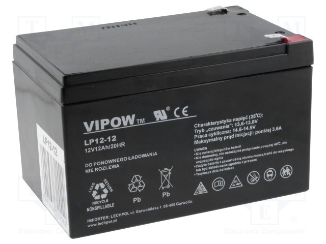 Аккум: свиноцово-кислотный; 12В; 12Ач; AGM; необслуживаемый |