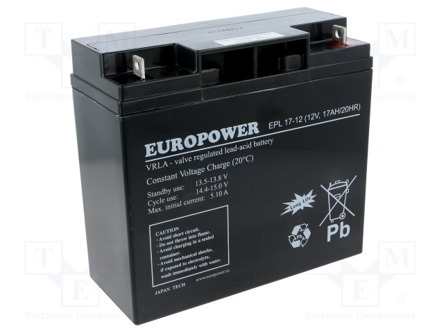 Аккум: свиноцово-кислотный; 12В; 17Ач; AGM; необслуживаемый |