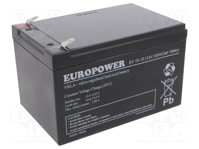 Аккум: свиноцово-кислотный; 12В; 15Ач; AGM; необслуживаемый; 72Вт |