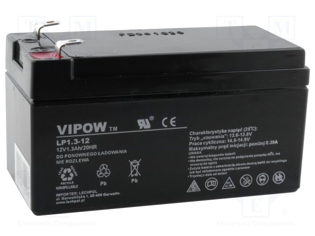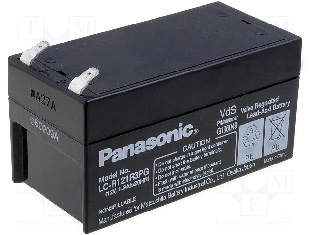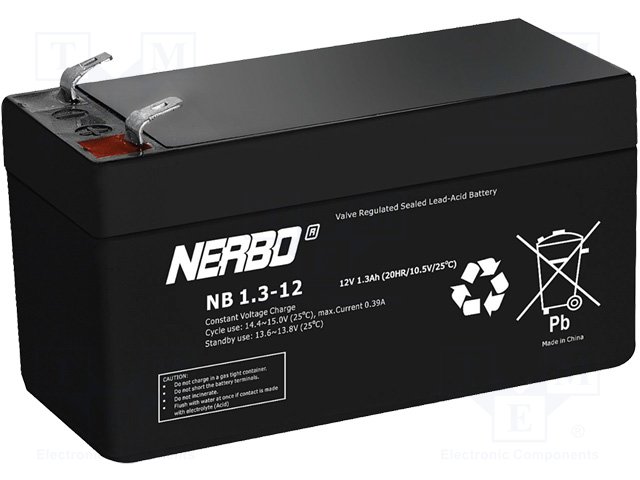 Аккум: свиноцово-кислотный; 12В; 1,3Ач; AGM; необслуживаемый |
