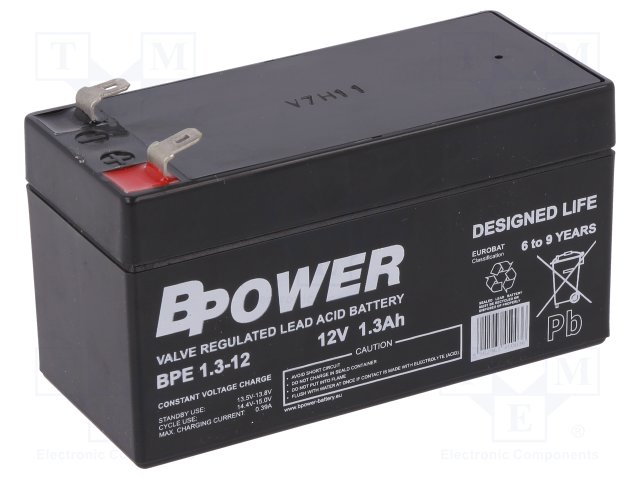 Аккум: свиноцово-кислотный; 12В; 1,3Ач; AGM; необслуживаемый