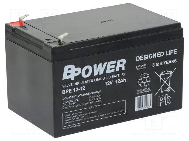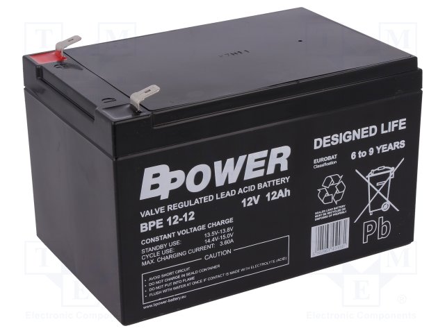Аккум: свиноцово-кислотный; 12В; 12Ач; AGM; необслуживаемый