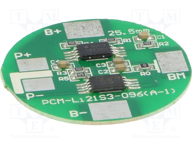 PCB защиты; Li-Ion; Ø18,5мм; 2,5А; 3,6ВDC