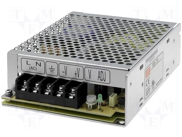 Блок питания: импульсный; модульный; 75Вт; 15ВDC; 129x97x38мм; 5А |