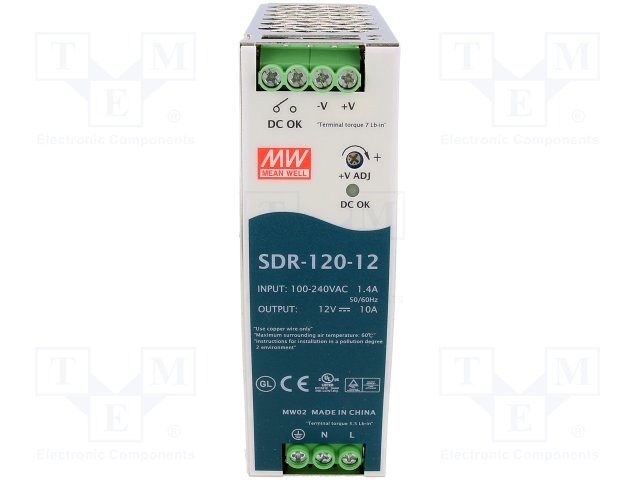 Блок питания: импульсный; 120Вт; 12ВDC; 12÷14ВDC; 10А; 88÷264ВAC |