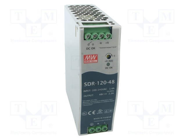 Блок питания: импульсный; 120Вт; 48ВDC; 48÷55ВDC; 2,5А; 88÷264ВAC |