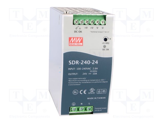 Блок питания: импульсный; 240Вт; 24ВDC; 24÷28ВDC; 10А; 88÷264ВAC |